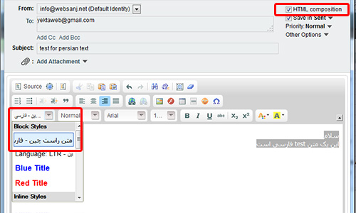 طریق ارسال ایمیل های فارسی به صورت راست چین: